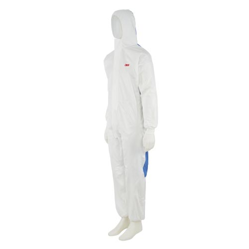 3M™ Schutzanzug 4545 für eine wirksame Barriere gegenüber Flüssigkeitsspritzern, bestimmter Chemikalienbelastung und gefährlichen Partikeln. Der reinweiße 3M Schutzanzug 4545 erfüllt die Anforderungen einer Reihe von Normen für Chemikalienschutzkleidung, einschließlich EN 14126 Infektionserreger, EN 1073-2 radioaktiv kontaminierte Partikel, EN 1149, EN ISO 13688, Typ 6 Flüssigkeitsspritzer EN 13034 und Typ 5 Staub EN ISO 13982-1. Er besteht aus einem hochwertigen Zweikomponentenvlies, das eine hohe Zugfestigkeit bietet und mit einem besonders fusselarmen, mikroporösen Laminat beschichtet ist, das für das Entweichen von Hitze und Feuchtigkeit durch die Mikroporen sorgt. Das Material ist besonders angenehm und drapierbar und ermöglicht so längere Tragezeiten, damit Sie Ihre Arbeit bequem erledigen können. Strickbündchen sowie elastische Einsätze an der Taille und den Knöcheln sorgen für einen höheren Tragekomfort und größere Bewegungsfreiheit, während das besonders fusselarme Material Kontaminationen der Umgebung reduziert. Das dreiteilige Design der Haube ist kompatibel mit zusätzlicher PSA (Persönlicher Schutzausrüstung). Der 2-Wege Reißverschluss mit abklebbarer Patte bietet zusätzlichen Schutz und verringert das Expositionsrisiko der Haut. Starke Nähte und teilweise eingefasste Nähte vermindern das Leckagerisiko und das Expositionsrisiko für die Haut und verbessern die Robustheit. Der Schutzanzug verfügt auch über eine antistatische Beschichtung gemäß EN 1149, die statische Entladungen reduziert und das Risiko von Funkenbildung vermindern kann.